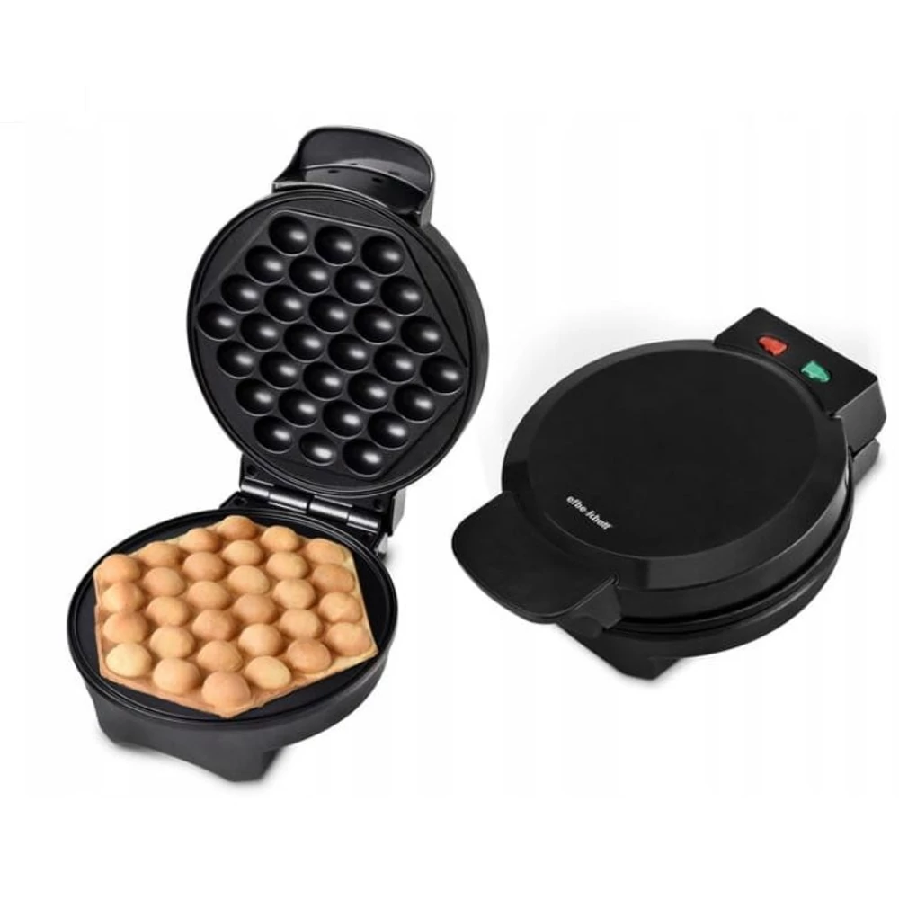 Az EGG Puffok igazi slágerek a fagylaltozók és food truckok körében, és most otthon is elkészítheted ezeket a kulináris finomságokat! Buborékos gofrisütőnket azoknak a street food rajongóknak hoztuk létre, akik szeretnének kísérletezni egyedi ízekkel, családjukat és barátaikat autentikus buborékos gofrival megörvendeztetni. Teljesítmény 850W Speciális sütőfelület buborék gofri készítéséhez Tapadásmentes bevonat Csúszásmentes lábak Hőálló fogantyú Vezeték tároló