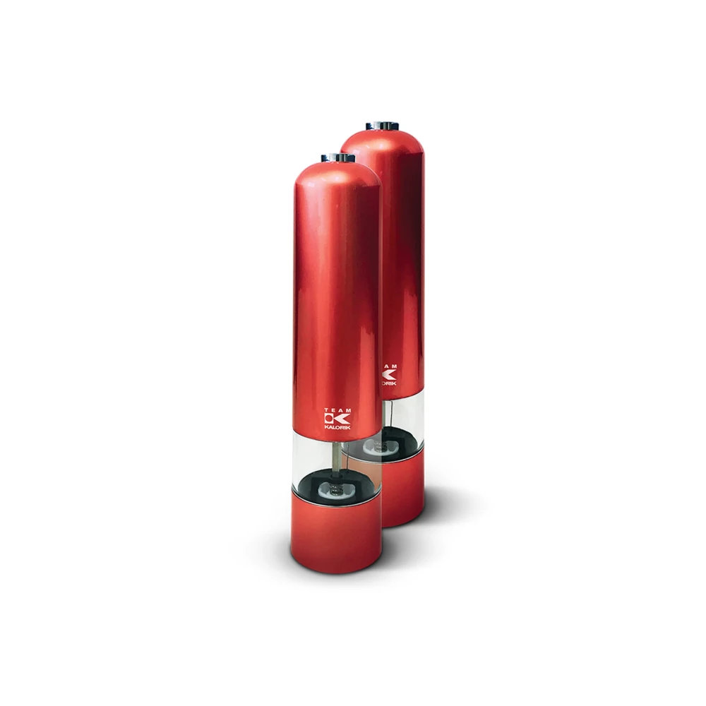 Kalorik TKG PSGR1050R Só- és borsőrlő szett -Működés 4db AAA elemmel -Kerámia örlőkések-őrlés szabályozás -Beépített világítás -Átlátszó fűszer tartó rekesz