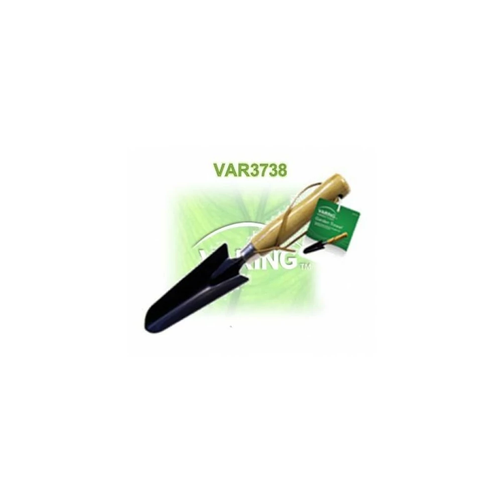 Kis kerti ültető lapát. Korrózió elleni bevonattal kezelt acél fejjel. Lakozott fa nyéllel.