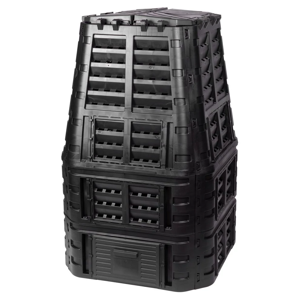 Egész évben használható ECO komposztáló - Lehetővé teszi az értékes műtrágya önálló elkészítését. - A komposztáló használata megtakarítja a műtrágyát és az újrahasznosítható hulladék ártalmatlanításának költségeit. - A különleges forma egyenletes légáramlást biztosít, lehetővé teszi a komposzt öntözését és felgyorsítja a bomlási folyamatot. - Egyszerű fedél, amely megvédi a tartalmat a kártevőktől és az erős széltől. - Kényelmes fogantyú. - A kivehető alsó ajtó lehetővé teszi az érett komposzt könnyű eltávolítását. - Könnyű telepítés szerszámok nélkül. - Földi horgonyokkal történő rögzítés lehetősége.