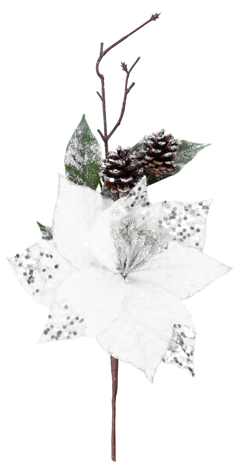 A MagicHome karácsonyi ág mikulásvirággal dekoráció teljessé Poinsettia teszi a karácsonyi időszak varázslatos hangulatát otthonában. Színe fehér. 34 cm magas.