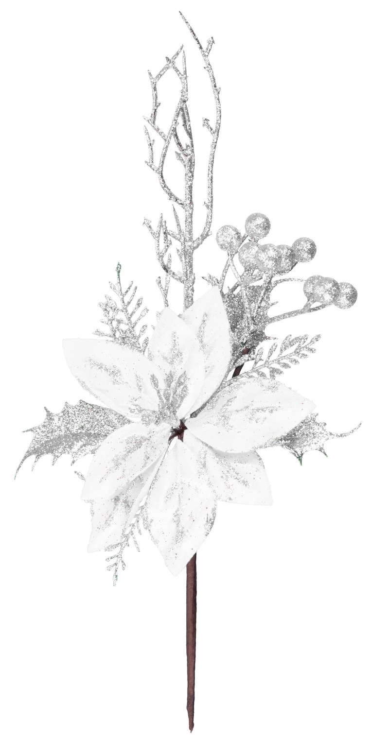 A MagicHome karácsonyi ág virággal dekoráció teljessé teszi a karácsony varázslatos hangulatát otthonában. Színe ezüst. 27 cm magas.