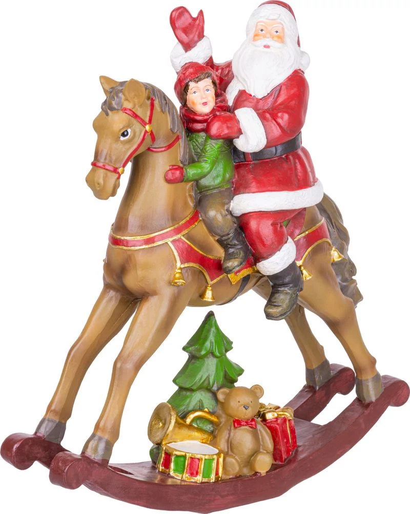 A csodálatos MagicHome Mikulás egy kisfiúval lóháton dekoráció megszépíti otthonát a karácsonyi időszakban. A dekoráció műgyantából készült, méretei 28 x 10 x 30 cm.