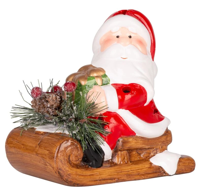 A csodálatos MagicHome Mikulás szánon dekoráció megszépíti otthonát a karácsonyi időszakban. Ez egy karácsonyi dekoráció LED világítással. A LED színe meleg fehér és a LED-ek száma 1. Egyszerű világítási funkcióval és BE/KI kapcsolóval rendelkezik. Az áramellátást 2x LR44 elem biztosítja, amely a termékdoboz része. A dekoráció csak belső használatra szolgál. Terrakottából készült. Méretei 12,6 x 8,5 x 11,5 cm.