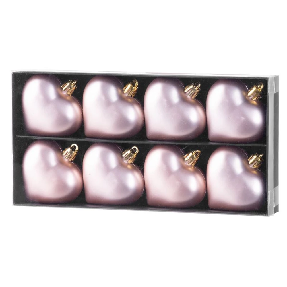 A karácsonyfa díszkészlet a karácsonyfa ünnepi díszítésére szolgál. 8 db, 6 cm átmérőjű szívbol áll. A díszek színe rózsaszín. Műanyagból készült.
