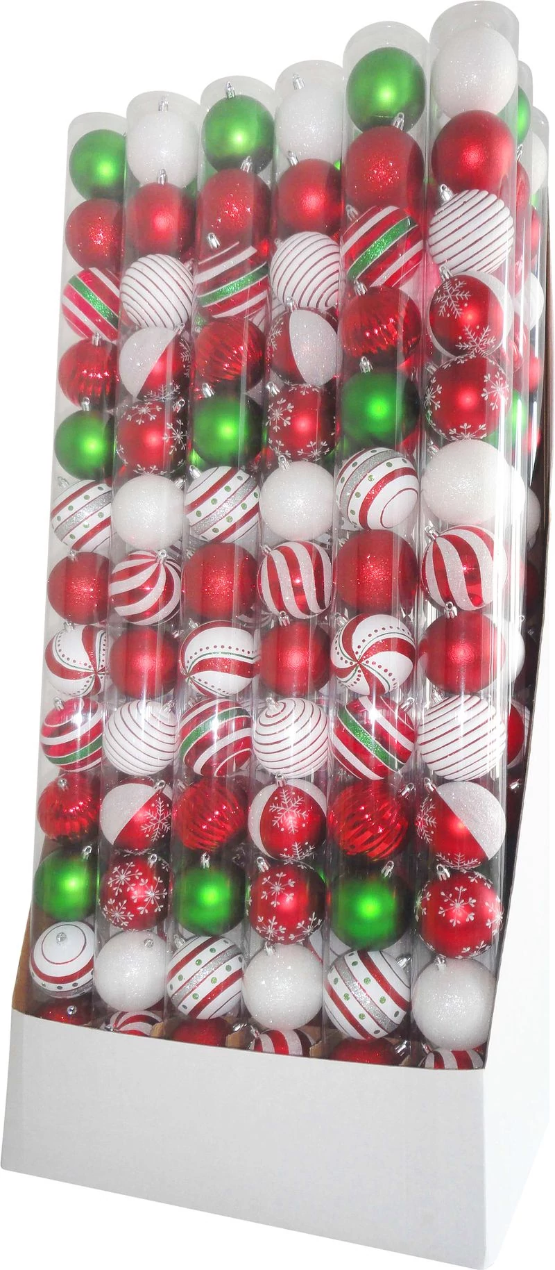 A karácsonyfa díszkészlet a karácsonyfa ünnepi díszítésére szolgál. 14 db 8 cm átmérőjű darabból álló karácsonyi gömbből áll. A díszített gömbök színe piros-fehér. Műanyagból készült.
