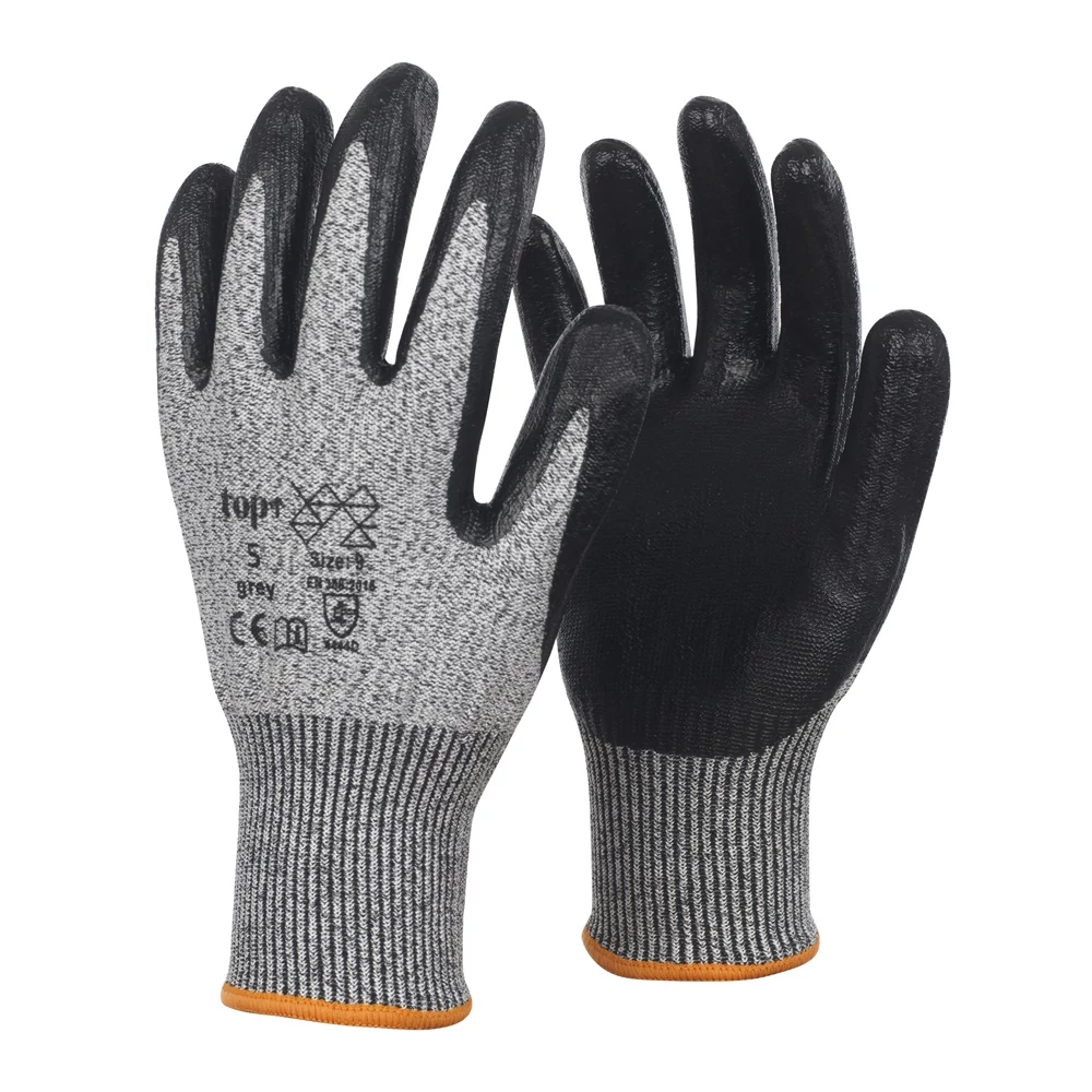TOP 5 nitril mártott kevertszálas vágásbiztos védőkesztyű, gumírozott mandzsetta 9